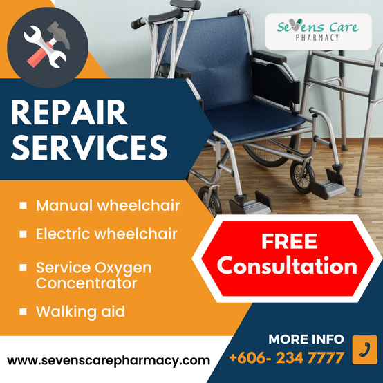 Sevens Care Pharmacy offers wheelchair repair service for various brands of wheelchairs (subject to availability of spare parts).